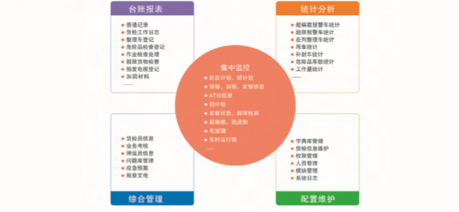 貨檢站安全集中監(jiān)控系統(tǒng)是對(duì)鐵路貨運(yùn)編組站集中調(diào)度、集中管理、集中處理和安全作業(yè)監(jiān)控的集 成性產(chǎn)品。該產(chǎn)品整合了車站各類貨運(yùn)安全檢測設(shè)備,實(shí)現(xiàn)了貨車從進(jìn)站到出站全程監(jiān)控追蹤。