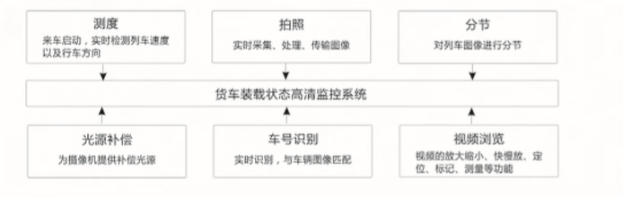系統(tǒng)采用高清彩色線陣像機(jī),實(shí)時(shí)采集運(yùn)行中列車及貨物的裝載狀態(tài),生成高清晰彩色視頻圖像并 按車廂進(jìn)行準(zhǔn)確分割,實(shí)現(xiàn)預(yù)檢作業(yè)的快速發(fā)現(xiàn)、快速定位、快速標(biāo)記、及時(shí)報(bào)警等功能。通過優(yōu)化的 壓縮算法,使網(wǎng)絡(luò)傳輸數(shù)據(jù)流量小、視頻質(zhì)量高,符合貨檢安全監(jiān)控三級聯(lián)網(wǎng)系統(tǒng)的應(yīng)用條件,可接入 貨檢集中監(jiān)控平臺。