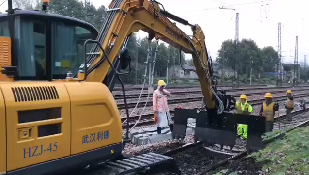HZJ-45型換枕機(jī)安裝有專用的扒砟機(jī)構(gòu)及抓枕機(jī)構(gòu),主要用于大修換枕過程中實現(xiàn)機(jī)械化扒砟及軌枕的更換,適用枕型為木枕、69型、Ⅱ型和Ⅲ型混凝土軌枕,設(shè)備采用履帶公鐵兩用自行裝置和液壓安全應(yīng)急系統(tǒng),可以在施工現(xiàn)場擺放并自由上下線路,也可以在平車上加裝我公司的上下道平臺后,通過平車運(yùn)輸。機(jī)動性高、易用性好、適用性廣、安全性強(qiáng)。