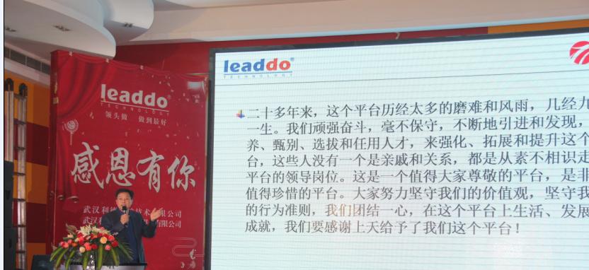 隨后,利德公司總經(jīng)理王彥文先生發(fā)表了以“感恩”為主題的重要講話(huà),會(huì)上王總首先講到要感恩我們的衣食父母客戶(hù),其次感恩利德公司的所有員工的辛勤付出,尤其感謝利德的創(chuàng)始人王純政先生,是他提供給了可以實(shí)現(xiàn)自我價(jià)值的平臺(tái),同時(shí)感謝神州高鐵各級(jí)領(lǐng)導(dǎo)給予的大力支持。對(duì)公司2017年所取得的成績(jī)給予了肯定,同時(shí)提出了2018年的新的戰(zhàn)略方針。